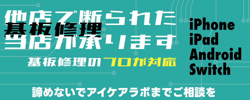 - 作業の結果修理不可になった場合調査作業費として3,000円頂戴いたします。(iPad・基板修理は5,000円。割引併用不可)